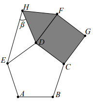 Na figura abaixo, ABCDE é um pentágono regular, CDFG é um quadrado e DFH é um triângulo equilátero. O valor do ângulo B é: