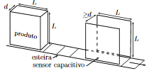 Certo produto industrial constitui-se de uma embalagem rígida cheia de óleo, de dimensões L × L × d, sendo transportado numa esteira que passa por um sensor capacitivo de duas placas paralelas e quadradas de lado L, afastadas entre si de uma distância ligeiramente maior que d, conforme a figura. Quando o produto estiver inteiramente inserido entre as placas, o sensor deve acusar um valor de capacitância Cₒ. Considere, contudo, tenha havido antes um indesejado vazamento de ´óleo, tal que a efetiva medida da capacitância seja C = 3/4Cₒ. Sendo dadas as respectivas constantes dielétricas do ´óleo, κ = 2; e do ar, κₐᵣ - 1, e desprezando o efeito da constante dielétrica da embalagem, assinale a percentagem do volume de ´óleo vazado em relação ao seu volume original.