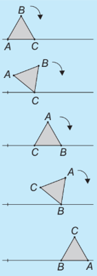 Um triângulo equilátero ABC gira uma vez em torno do vértice C e outra vez em torno do vértice B, sempre se apoiando em uma reta, como na fi gura ao lado.