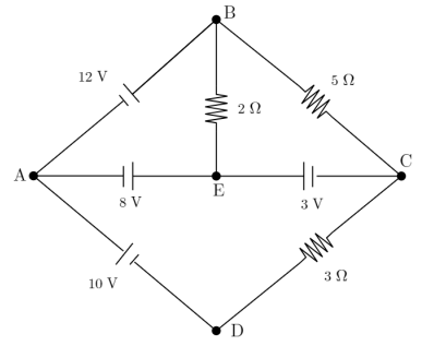 Determine a corrente que passa, respectivamente. nas baterias de 3 V e 12 V.