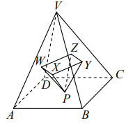 Considere uma pirâmide VABCD de base quadrada. Seja P o centro da base ABCD e X, Y, Z e W pontos sobre as faces laterais tais que PXYWZ é uma pirâmide semelhante a VABCD, com as diagonais da base XZ e YW paralelos a BC e CD, respectivamente.
