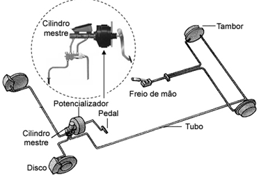 I) – Interessante. Ao aplicarmos uma força no pedal, esta é ampliada pelo braço da alavanca. Mas o tamanho desta alavanca não é o suficiente para conseguir uma pressão nos discos e nos tambores para fazer parar o automóvel.