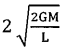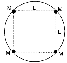 Considere um sistema formado por quatro estrelas iguais, cada qual de massa M. Os centros dessas estrelas encontram-se nos vértices de um quadrado de lado L, conforme a figura acima, de tal forma que o sistema assim formado gira em torno do centro do quadrado com velocidade angular constante. Sendo G a constante gravitacional, se um meteorito de massa m passar pelo centro de massa do sistema, perpendicularmente ao plano da órbita, qual é a menor velocidade que o meteorito deve ter no centro de massa do sistema para poder escapar da atração gravitacional das estrelas?