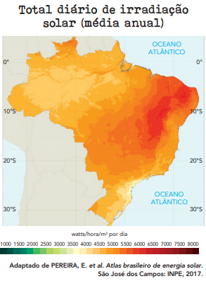 O aproveitamento da fonte de energia abordado na reportagem é favorecido pela seguinte característica ambiental brasileira: