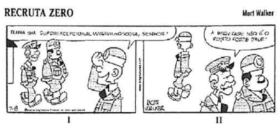 Observe o quadrinho de Mort Walker (Recruta Zero).