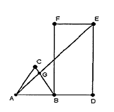 O triangulo ABC acima é equilátero de lado igual a 2cm. BDEF é um retângulo de medidas 2cm x 5cm. Além disso, A, B e D estão alinhados. Sendo assim, é correto afirmar que a medida do segmento GB, em centímetros, é:
