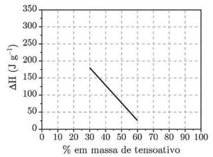 II. O calor latente de fusão do tensoativo puro é -180 J.g⁻¹.