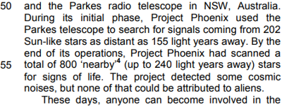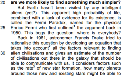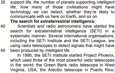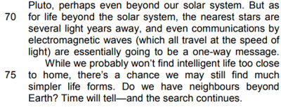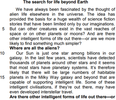 “We have always been fascinated by the thought of alien life elsewhere in the universe.” (lines 1 and 2).