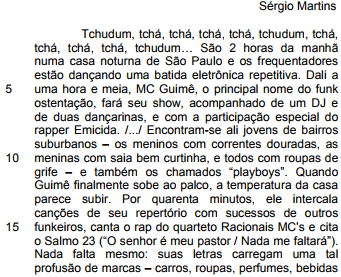 Pela leitura desse trecho da canção de MC Guimê, só NÃO se pode inferir que esse gênero musical