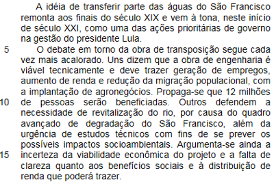IV. O debate sobre a transposição segue cada vez mais acalorado por causa das incertezas em relação à viabilidade técnica e aos impactos da distribuição de renda.