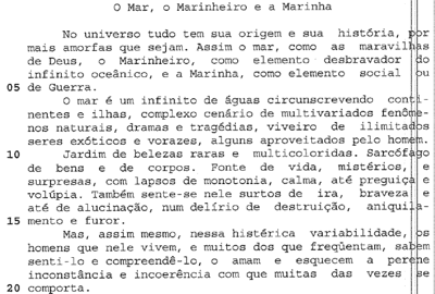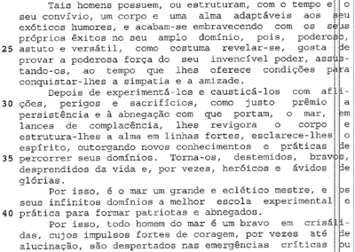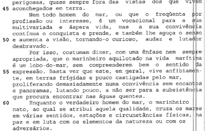 "Por isso, costumam dizer, com uma ênfase nem sempre apropriada, que o marinheiro aquilotado na vida marítima é um LOBO-DO-MAR," (linhas 52, 53 e 54).