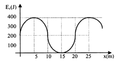 Um bloco está em movimento sob a ação de forças conservativas. A figura abaixo mostra o gráfico de sua energia cinética em função do deslocamento. Considerando que a energia mecânica do bloco é 400 J, assinale a alternativa correta.