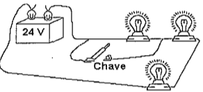 No circuito abaixo, todas as lâmpadas são iguais e circula uma corrente de 2A quando a chave está aberta.
