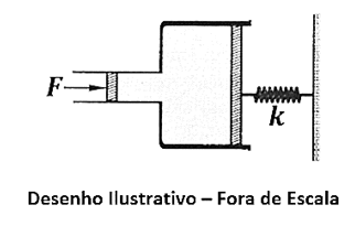 No embolo menor, de diâmetro igual a 4,00 cm, é aplicada uma força de 16,0 N. Sabe-se que o diâmetro do embolo maior é 20,0 cm e que a constante elástica da mola é de 80,0 N/cm. Se o líquido que preenche o recipiente é incompressível, então a deformação da mola, em cm, é igual a:
