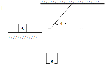 O esquema da figura abaixo representa um sistema em equilíbrio. As massas A e B são, respectivamente, 200kg e 100kg e os fios são ideais. O coeficiente de atrito estático entre o corpo A e a superfície é