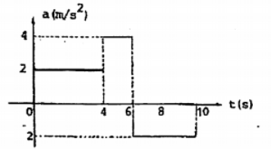O gráfico abaixo mostra de que maneira a aceleração de um móvel, em uma trajetória horizontal, variar em relação ao tempo. Sabe-se que sua massa é de 2,0 kg pequeno instante t₀ = 0 a sua velocidade é de 1,0 m/s.