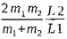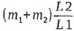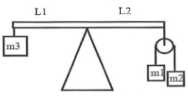 A figura abaixo mostra uma barra de massa desprezível apoiada sobre o vértice do triângulo. L₁ e L₂ são as distâncias das extremidades esquerda e direita da barra até seu centro. Os blocos de massas m₁ e m₂ estão ligados por um fio inextensível de massa desprezível suspenso por uma roldana, também com massa desprezível.