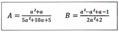 Um professor de Matemática apresentou aos seus alunos as expressões algébricas A e B a seguir, sendo 𝑎 ≠ 1 e 𝑎 ≠ -1.