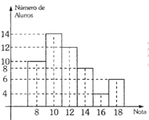 Um professor aplicou uma prova de matemática e organizou a nota dos alunos de acordo com o histograma abaixo.