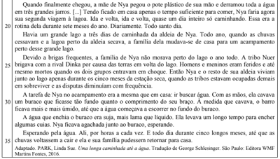 O texto a seguir é uma narração sobre Nya, uma menina do Sul do Sudão, um país africano. Leia-o.